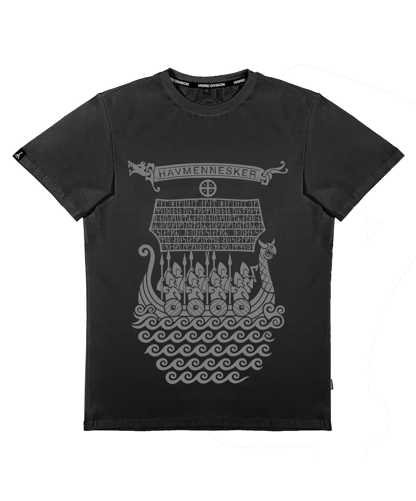 Принт "Дети моря" это стилистическое продолжение принта "STONE", выполненное в стиле древних рисунков, а руны использовались с рунического камня из Дании.