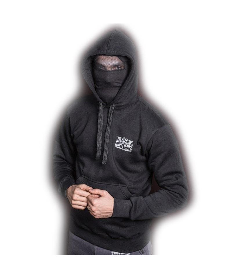 Мужская толстовка ФАНТОМ от ВАРГГРАД закрывающаяся на молнию проходящую через всю фронтальную сторону изделия, что создаёт дополнительное преимущество в эксплуатации. Благодаря особенностям конструкции шея защищена высоким воротом. Капюшон оснащён встроенной лёгкой маской с сеткой-прорезью для глаз, которая позволяет замаскировать лицо и стереть его очертания. Усиленный долговечный ластик на манжетах и поясе обеспечивает плотную посадку изделия по фигуре. По всей груди проходит руническое принт-лого бренда, которое к сожалению отсутствует на нашей фотографии. Материал: плотная трикотажная ткань с мягким, тёплым начёсом внутри(футер). 70% хлопок, 30% полиэстер.