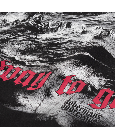 Мужская толстовка на молнии. Изготовлена из высококачественного хлопка, имеет два передних кармана, отделанных лентами. На левом рукаве небольшая этикетка с логотипом бренда.На левой стороне груди — небольшая надпись Viking Comp и рунический символ. Спина в основном закрыта принтом. На рисунке изображены лодки викингов в бурном море. Выше — большая надпись Viking Comp и рунические символы. Узор отсылает к стилю викингов.